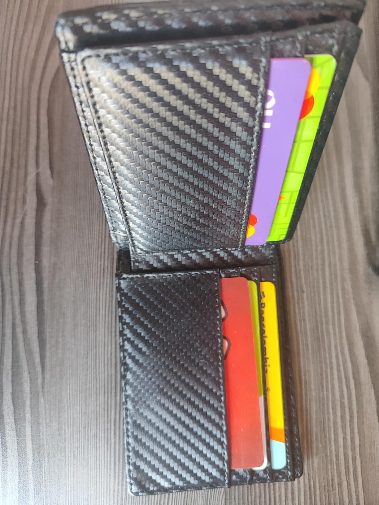 Tiene muchos bolsillos para diferentes tarjetas en general es un producto que se siente de buen material lo recomiendo bastante por su precio es una excelente opción