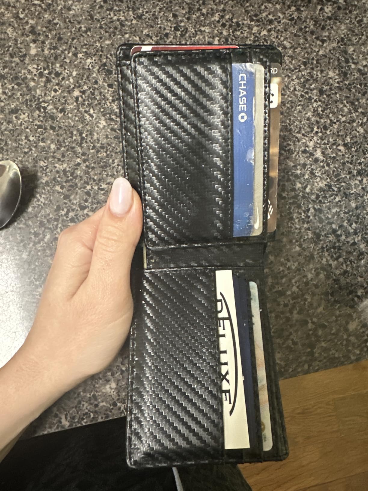 5 stars because the wallet works. I tested the wallet to see if my cards scanned and they didn’t scan! The RFID protection works! Someone stole my card information at DTW airport and I don’t know how since I didn’t use it. So I chose to buy a wallet that can protect my debit and credit cards from being scanned.