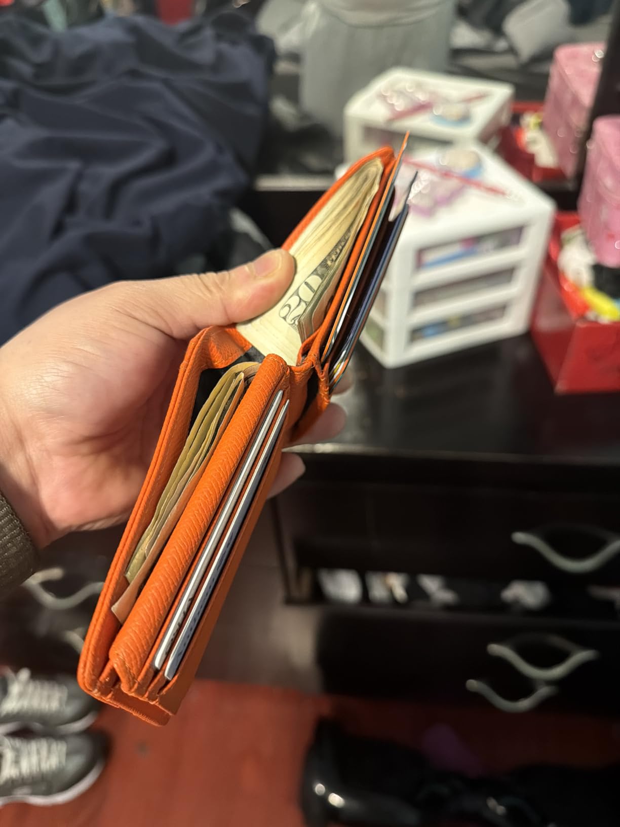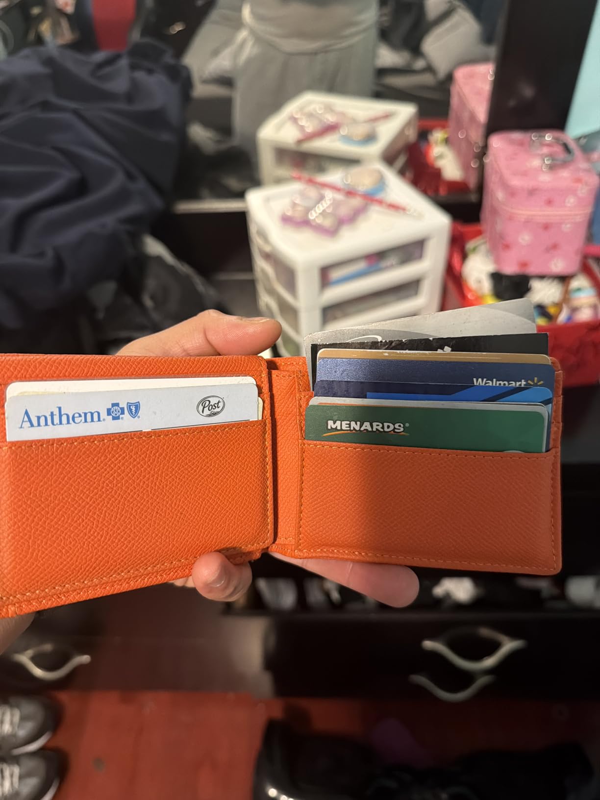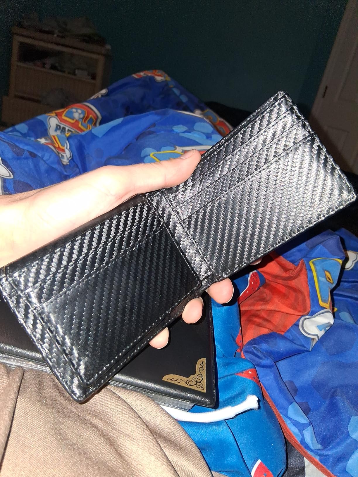 Tiene muy buen espacio para muchas tarjetas, licencias y por su puesto que tu dinero, súper ligera y delgada no hace bulto en bolsa, súper resistente y de gran calidad.
