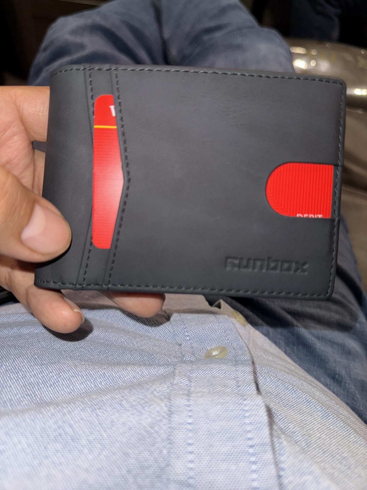 This RUNBOX wallet is one of the best wallets I’ve owned. It’s slim and lightweight, but still has plenty of space for cards, cash, and IDs. The two ID windows are really convenient, and the leather looks stylish and high-quality. Even when it’s full, it still feels thin in my pocket. It also comes in a nice gift box, which makes it perfect for gifting. Definitely a great value—highly recommend!