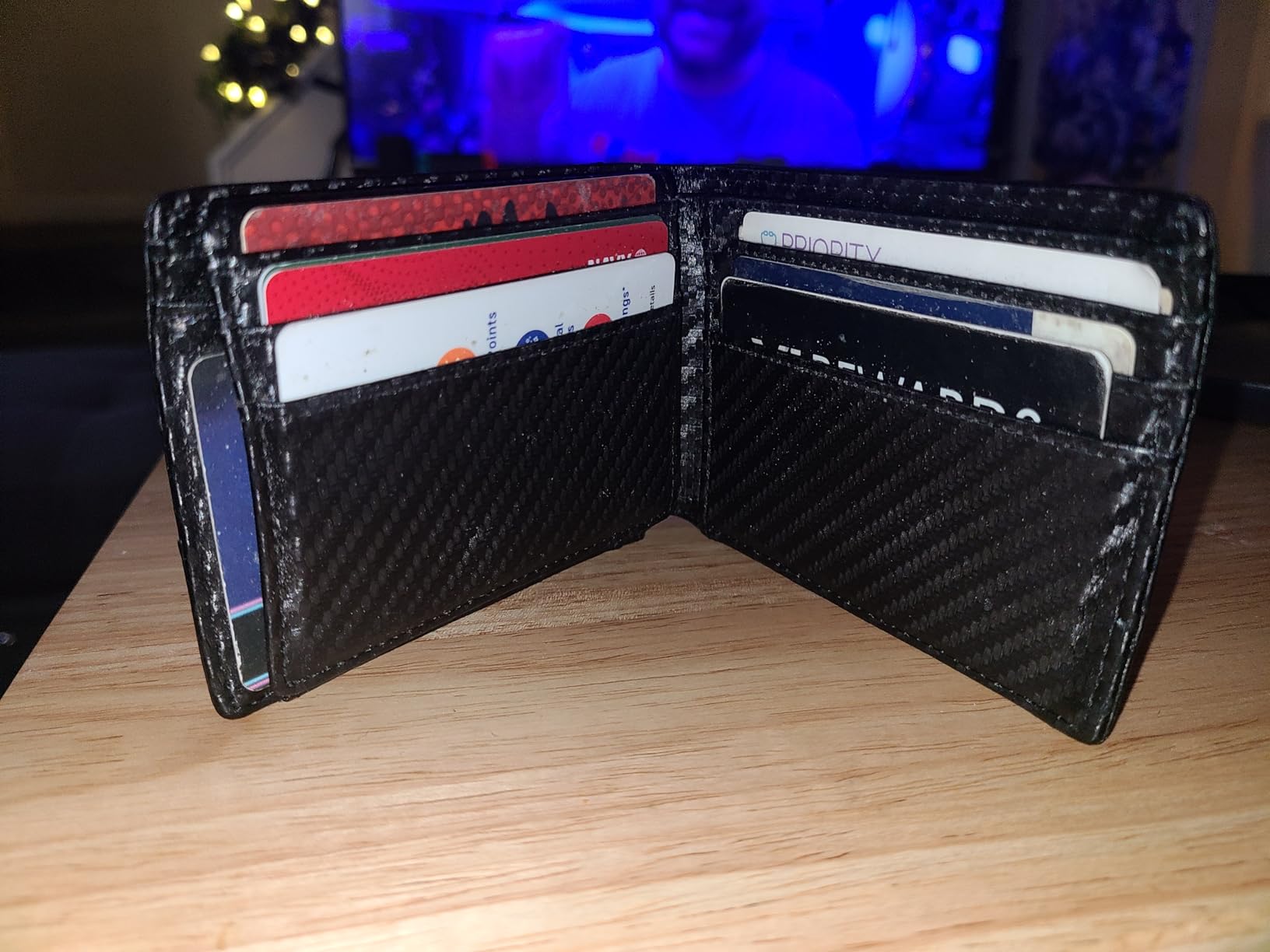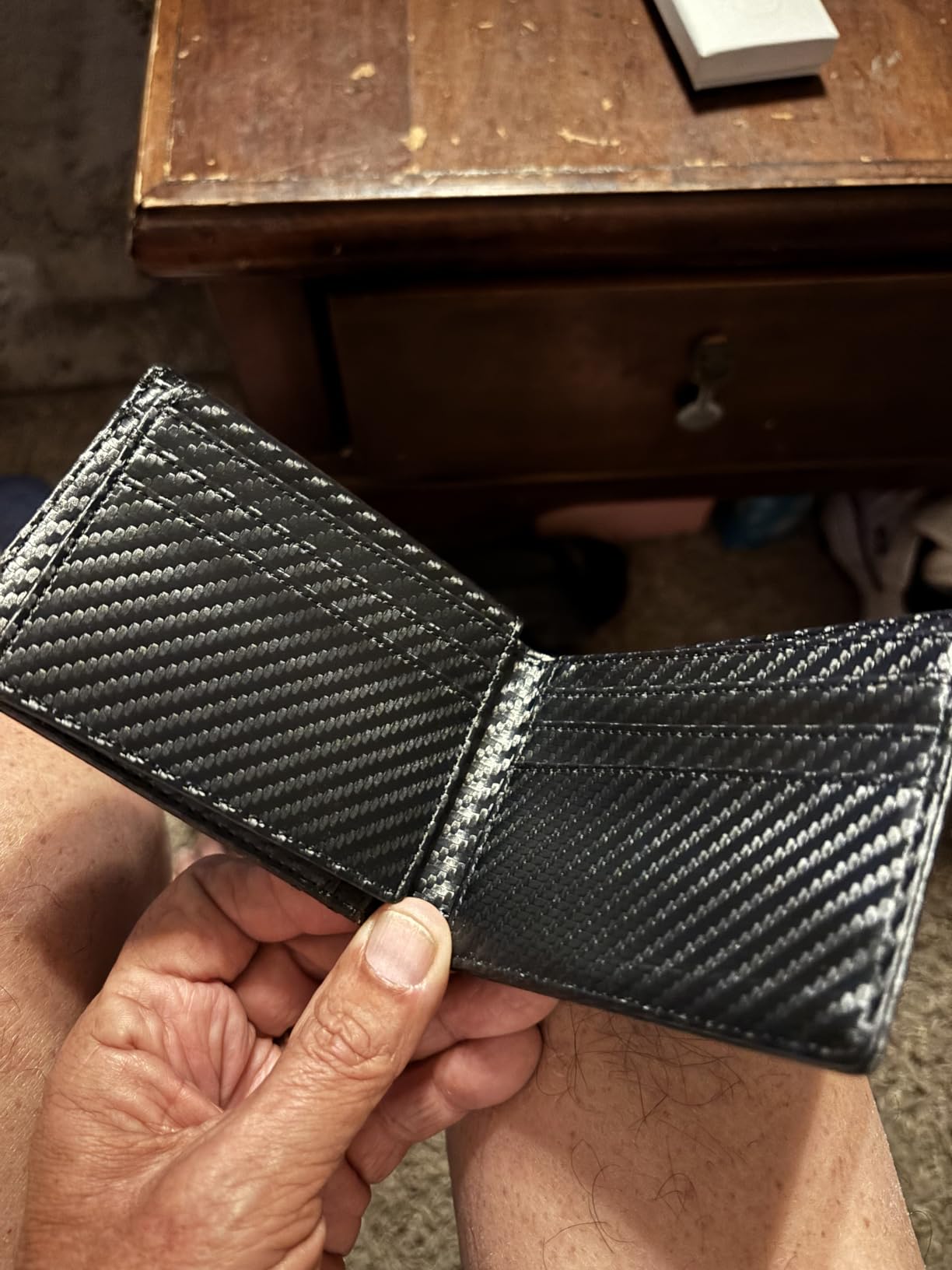 Great Purchase. Really good quality material with plenty of credit card space and paper bills storage. RFID protection that protects your cards...
