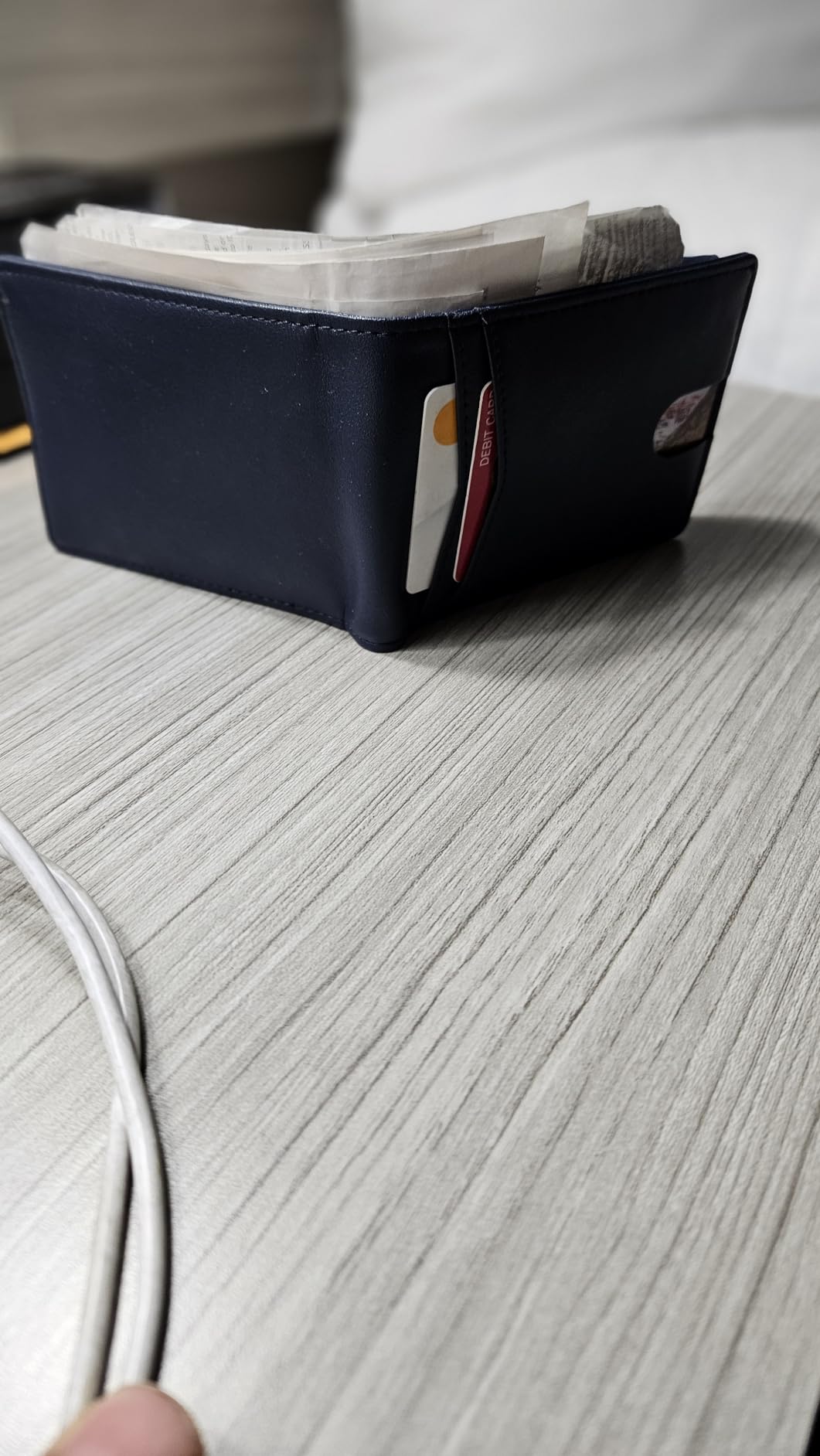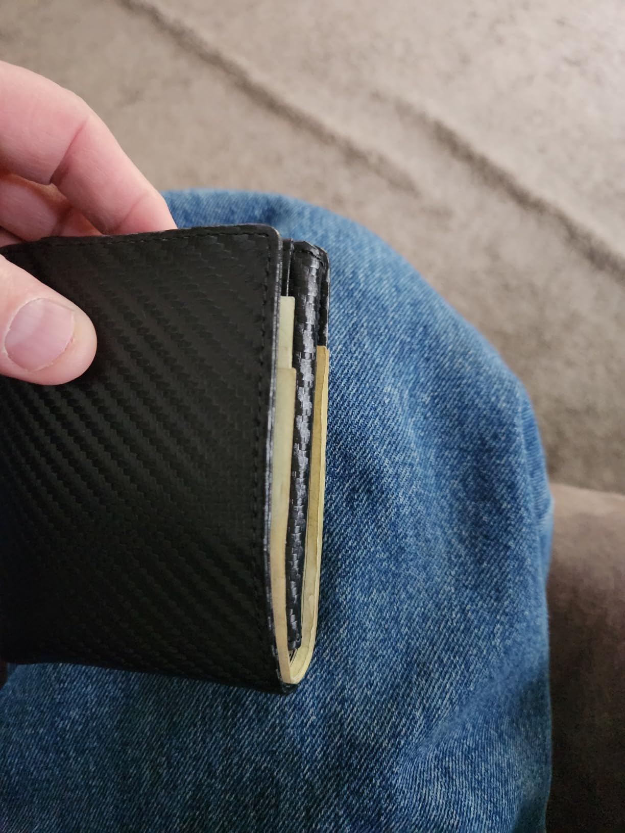 I appreciate the well made quality of this wallet but the synthetic material doesn’t conform to your butt like leather. The plastic pockets are slippery, unlike the suede that typically lines wallets. Cards can fall out easier. The fold hole in the bottom is larger than a leather wallet so that the stiff material can fold. As a result smaller coins can fall out of it. It looks like it could withstand anything but feels like a wood block in your back pocket when you sit down. I like the slimness, give and feel of leather wallets. All lacking with this bulky wallet.