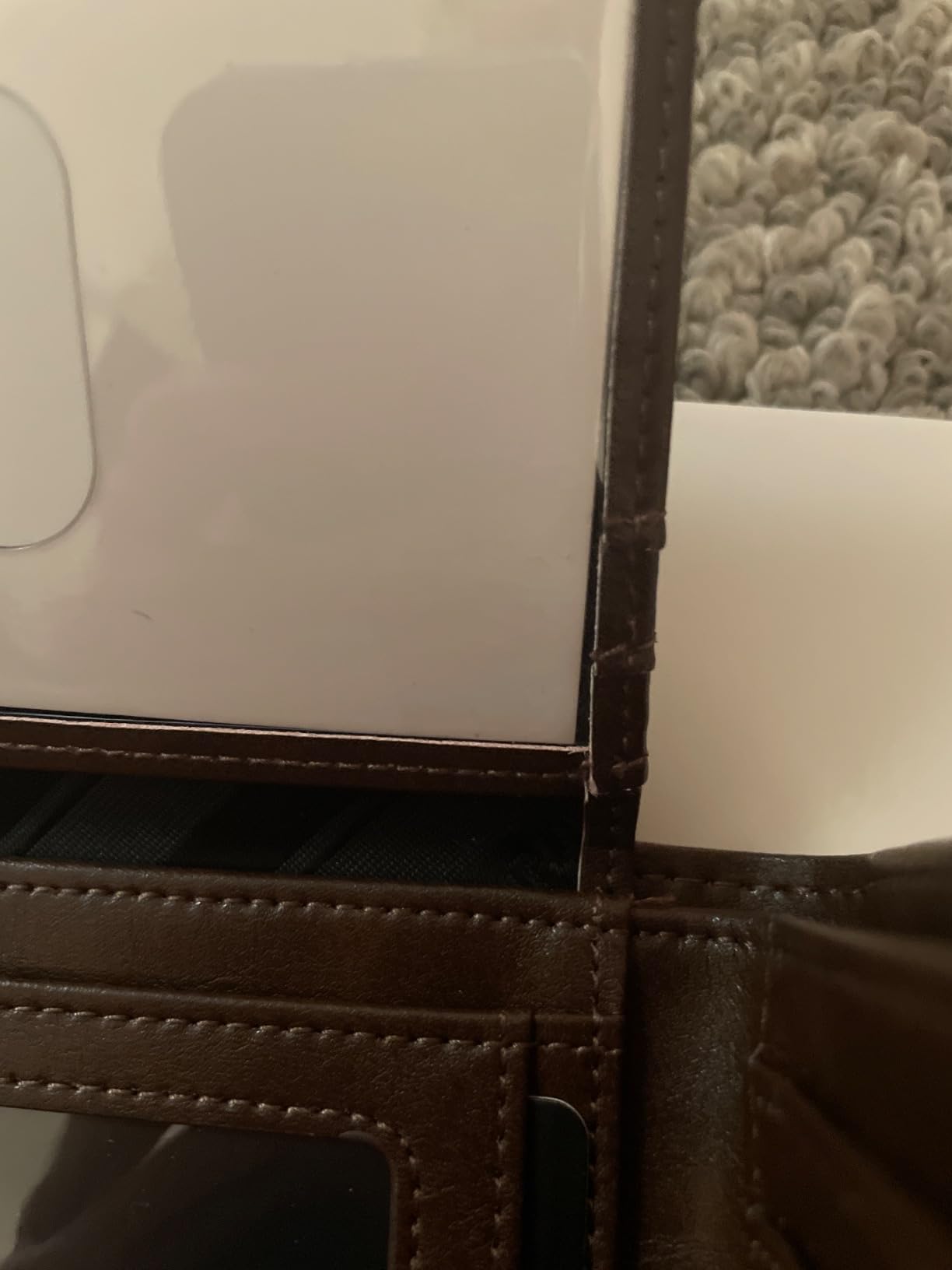 Excessive material at the top. My old wallet was not NEARLY as thick. I dug into the design of this one and there is just too much material used in ways that don't add value.