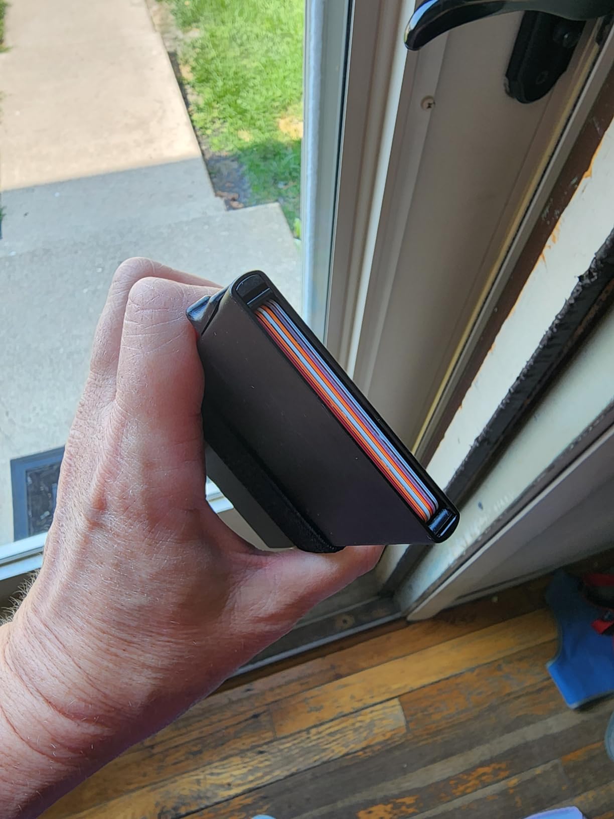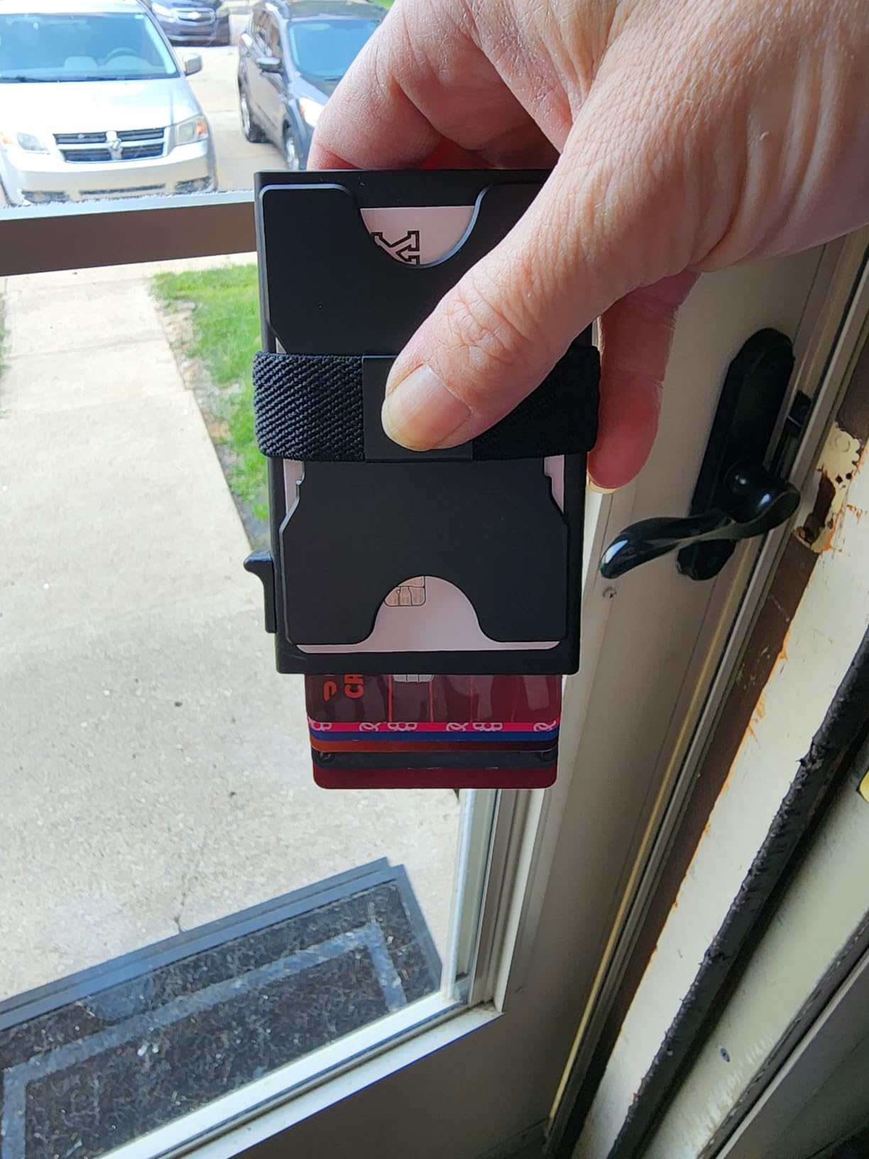 I really like this wallet. It's made of solid metal so it feels super study. Does have some weight to it but the durability makes up for it. The button to eject the 6 cards work surprisingly well. It's half the size of my trifold wallet. I didn't realize how bulky my wallet was until I got this. I have my tesla key card on the outside card plate for quick access and my license and credit cards on the inside. I also want to note that the Tesla key card doesnt work while still stored in the wallet.